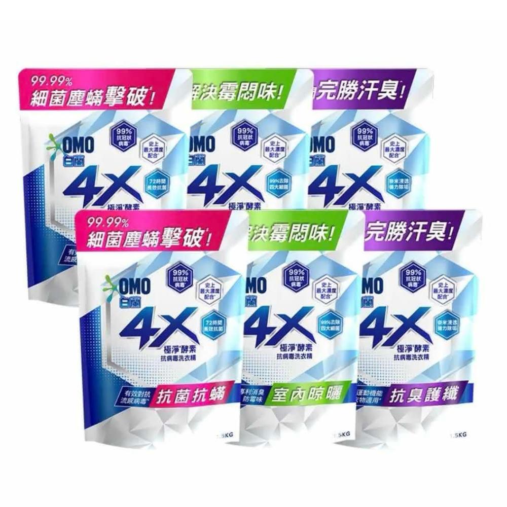 白蘭4X 極淨酵素 洗衣精 補充包1.5KG (抗菌抗螨 / 室內晾曬 / 抗臭護纖)