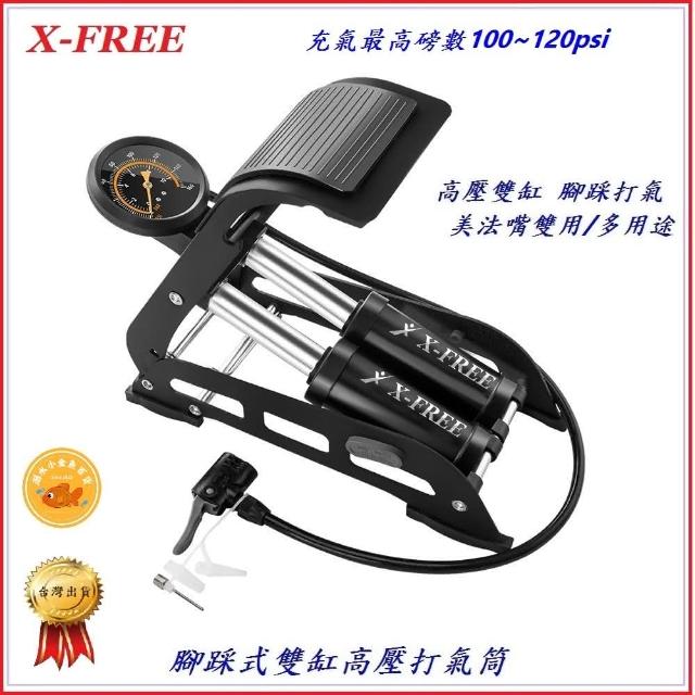 X-FREEX-FREE 腳踩式雙缸高壓打氣筒(自行車 打氣機 落地式 打氣桶 充氣機 籃球 汽車 機車 充氣泵 球針)