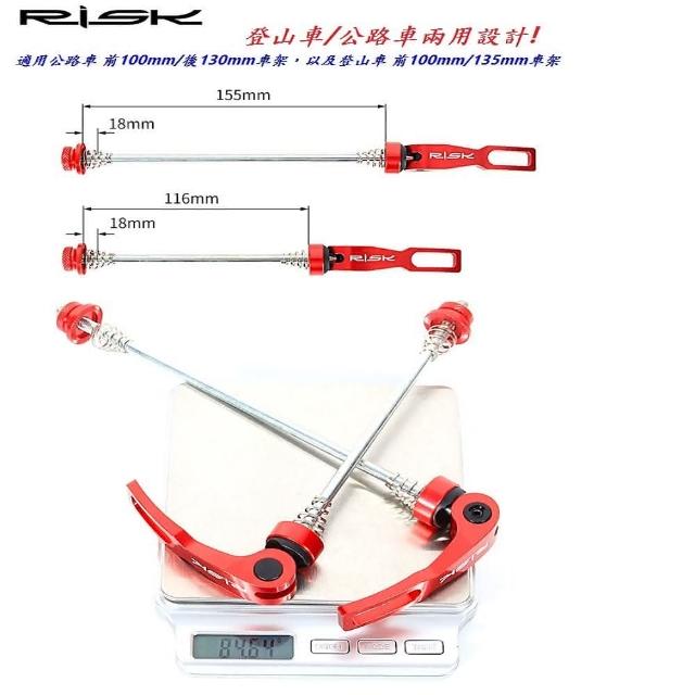 RISKRISK鋁合金快拆桿 前輪+後輪(雙用鋁合金快拆桿 RISK 跑車 登山車 快拆銷 公路車 快拆夾 自行車 輪軸 輪組 快拆 快拆桿 插銷)