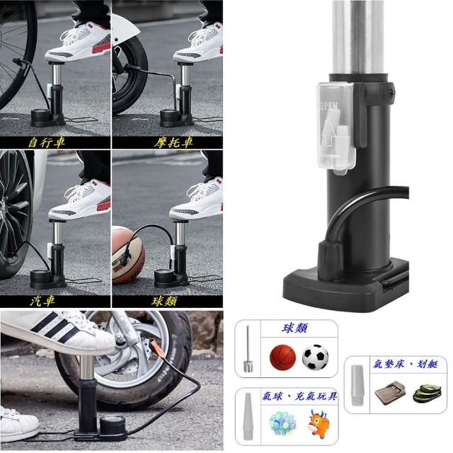 X-FREE便攜腳踩式打氣筒 內建壓力錶 氣嘴 球針 自行車 腳踏式 打氣筒 胎壓檢測 打氣桶 打氣機 輪胎打氣筒 機車汽車 充氣筒