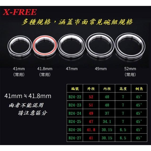 X-FREEDG 自行車碗組鋼製密封軸承培林52mm 51mm 41.8mm 41mm前叉培林 公路車頭碗培林 登山車龍頭軸承 培林