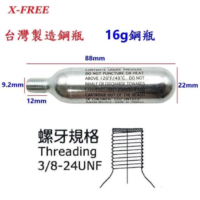 X-FREEDG 自行車打氣CO2鋼瓶 CO2槍鋼瓶 16g鋼瓶 BB槍氣瓶 二氧化碳鋼瓶 競技槍壓縮氣瓶 空氣槍氣瓶 16g 鋼瓶