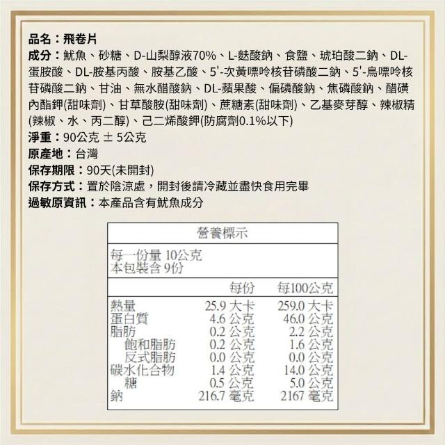 飛卷片90g x3包(澎湖小卷 小卷片 海味 炭烤片 海鮮零食 零食 食品)