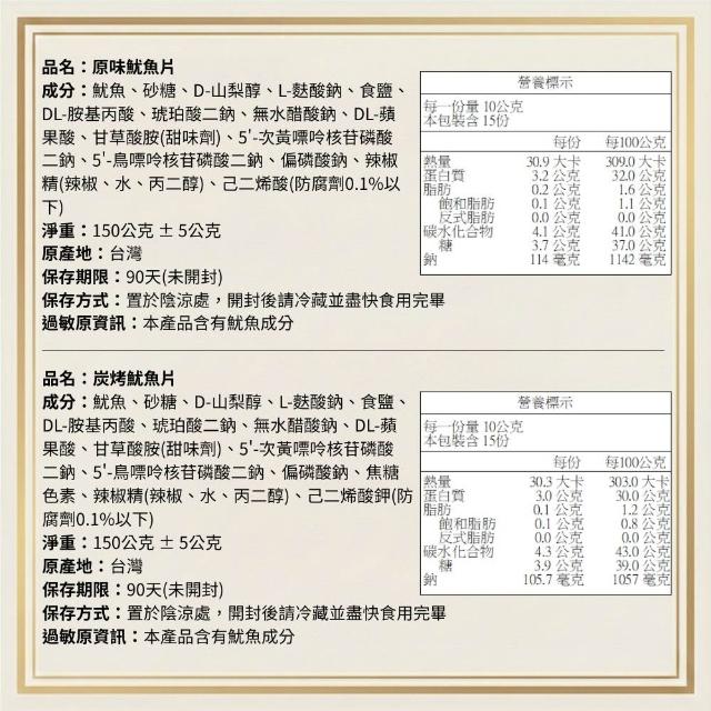 炭烤魷魚片150g x3包(原味魷魚片 炭烤魷魚片;大塊原切 蜜汁魷魚片 魷魚片 海鮮零食 碳烤魷魚片 海味 手撕魷魚)