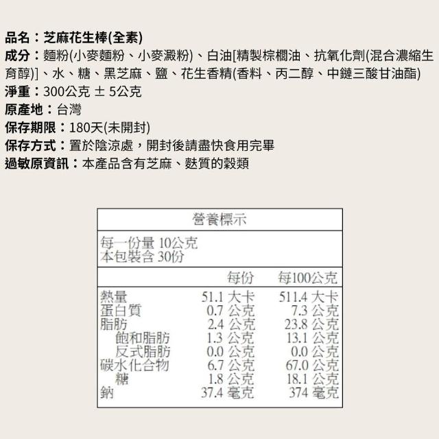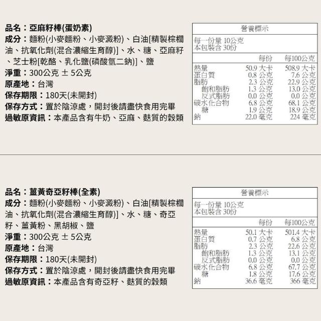 心晴食品坊酥脆餅乾棒 300g (全素) 🔥現貨秒出 亞麻籽棒 薑黃奇亞籽棒 芝麻花生棒 餅乾 方塊酥 素食餅乾