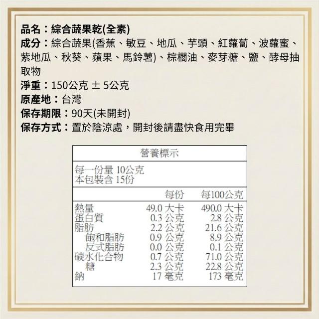 綜合蔬果乾150g x3包(全素 低溫真空乾燥 少油少鹽 蔬果脆片 水果乾 蔬菜乾 果乾 蔬果乾 果蔬脆)