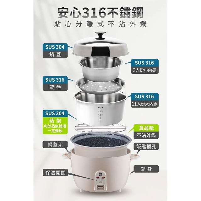CookPower 鍋寶11人份316不鏽鋼分離式電鍋 台灣製造 煮飯鍋/炊飯鍋/電飯鍋 保固兩年