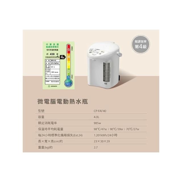 ZOJIRUSHI 象印4.0L微電腦電動熱水瓶(CP-FAF40)日本原裝