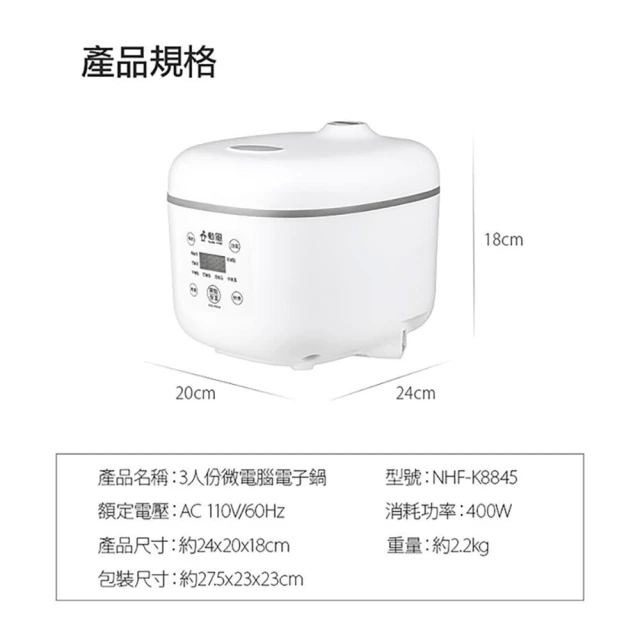 勳風3人份多功能微電腦電子鍋(NHF-K8845)