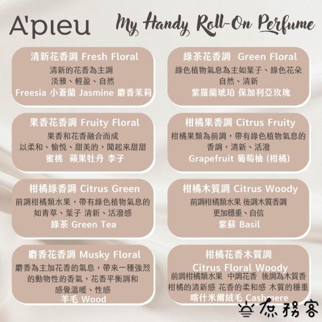 A’PIEU滾珠香水 花香 果香 香氛 隨身瓶 體香 小蒼蘭 麝香 茉莉 學生 平價 禮物 apieu 庶務客