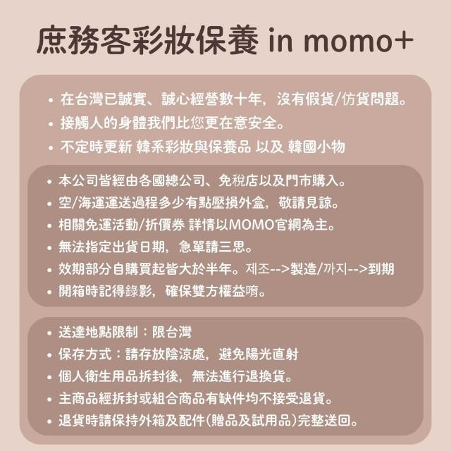 - 本公司對於所販售具遞延性之商品或服務,消費者權益均受保障。如因商店無法提供商品或服務,請與本公司聯繫辦理退貨或換成等值商品。