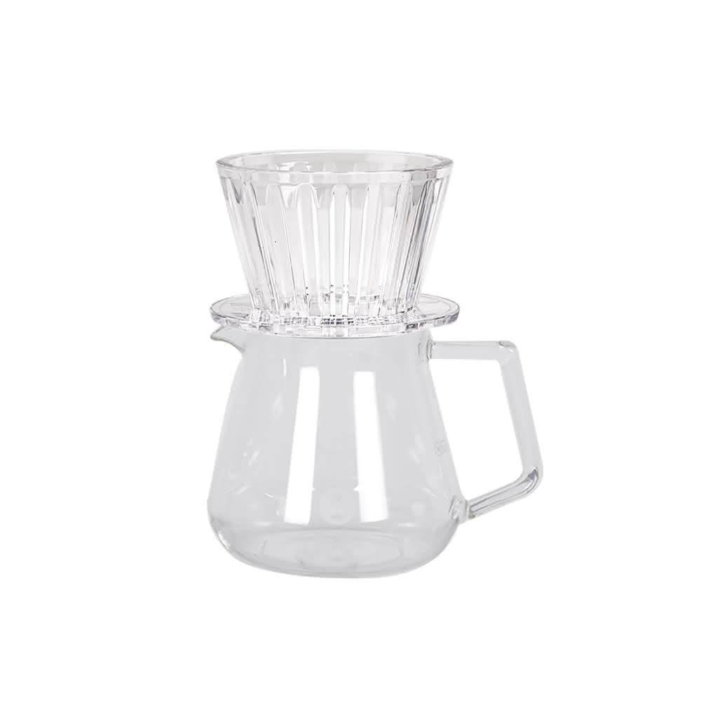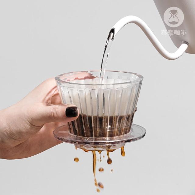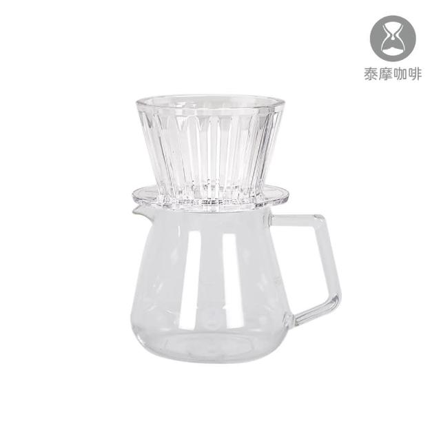 TIMEMORE 泰摩官方直營|蛋糕濾杯咖啡壺組 B75蛋糕濾杯晶透白+360ml咖啡分享壺透明平底濾杯 耐熱玻璃壺
