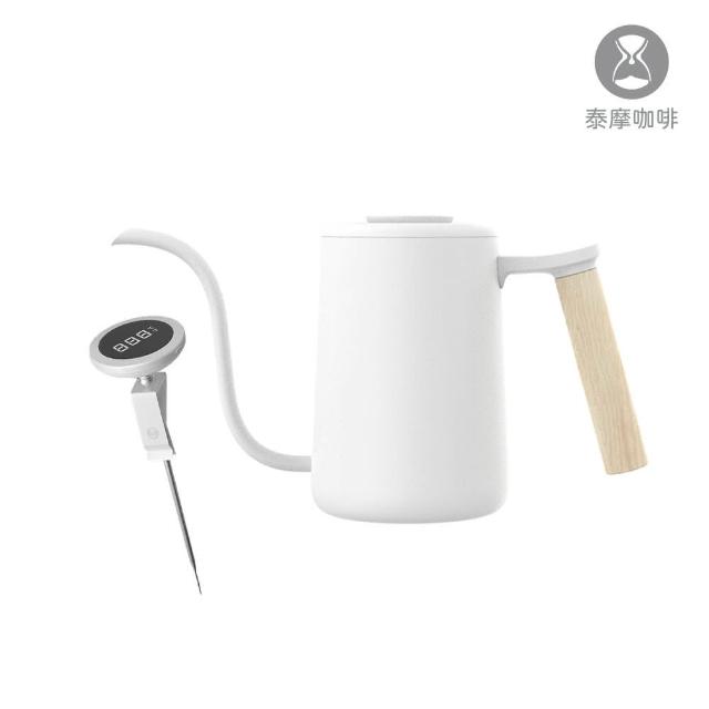 TIMEMORE 泰摩官方直營|魚Youth手沖壺白色+小T電子溫度計白色咖啡手沖壺 304不鏽鋼 咖啡溫度計 數位溫度計