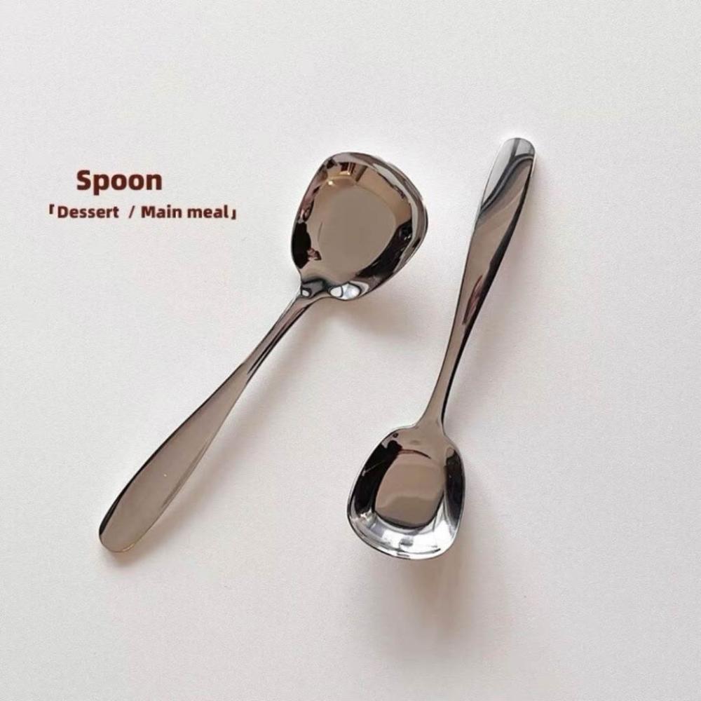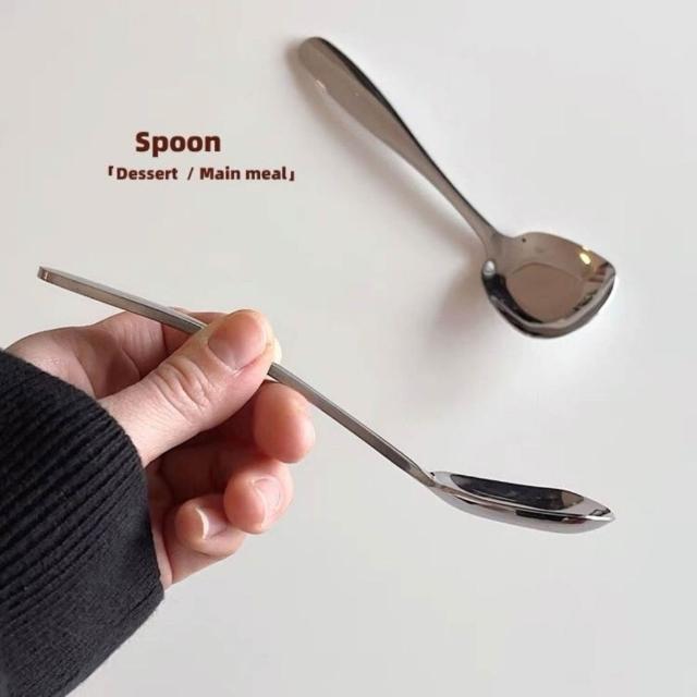 生活市集 韓系方形湯匙 甜點勺 冰淇淋湯匙 不銹鋼湯匙 湯勺 不銹鋼甜點勺 西餐湯匙 不銹鋼咖啡勺