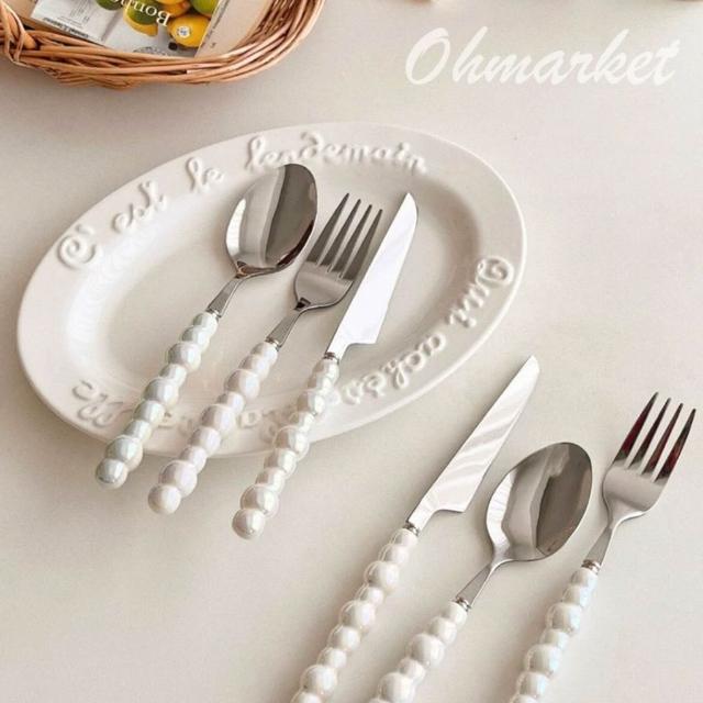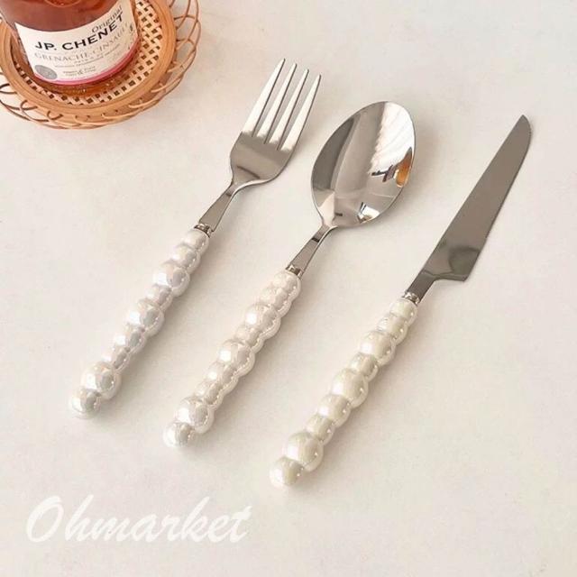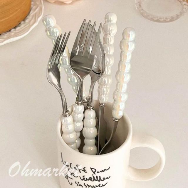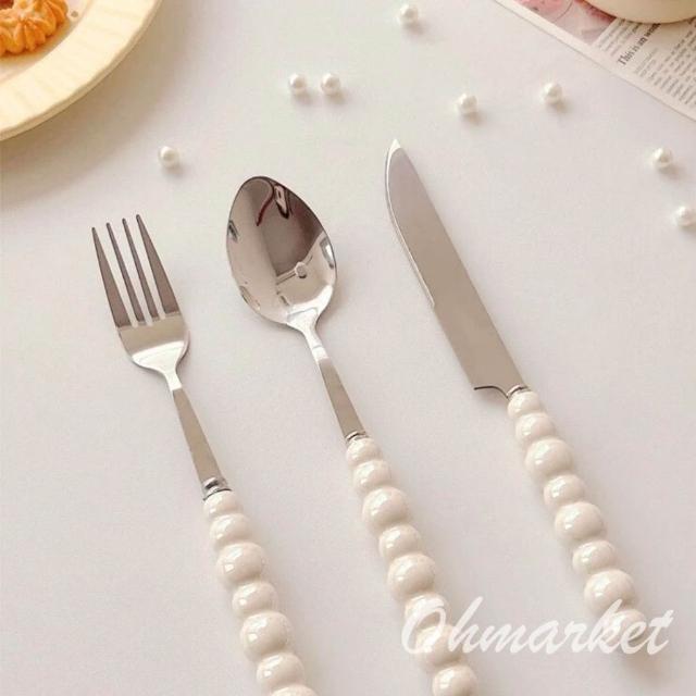 生活市集 珍珠陶瓷柄不鏽鋼餐具 刀叉勺 不銹鋼西餐具 陶瓷餐具 西餐刀叉勺 湯匙 叉子 午餐餐具