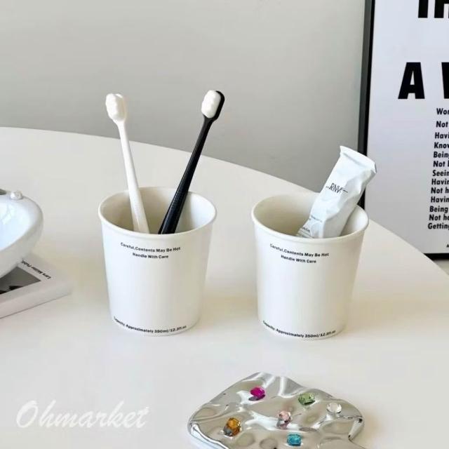 生活市集台灣現貨 韓系陶瓷漱口杯 刷牙洗漱杯子 隨行杯 咖啡杯 復古仿紙杯 馬克杯 甜點杯