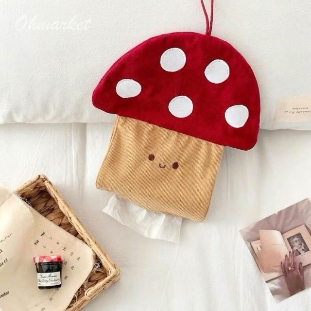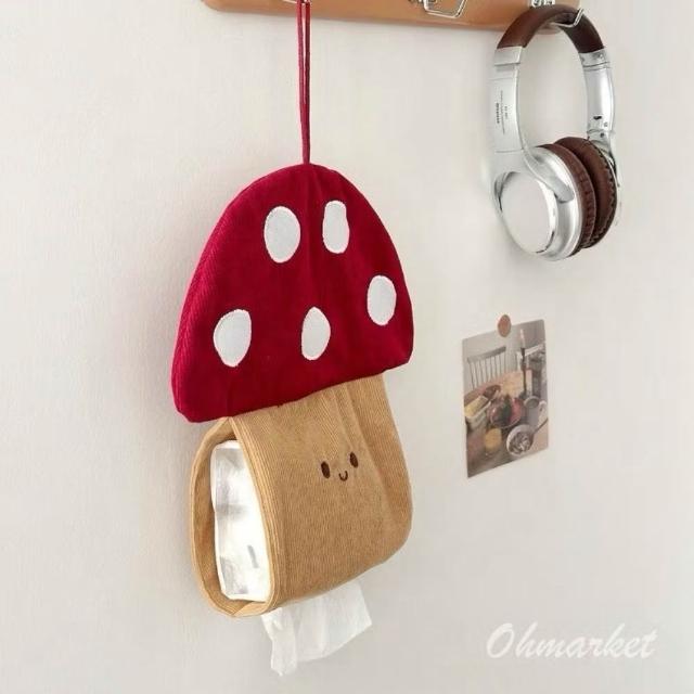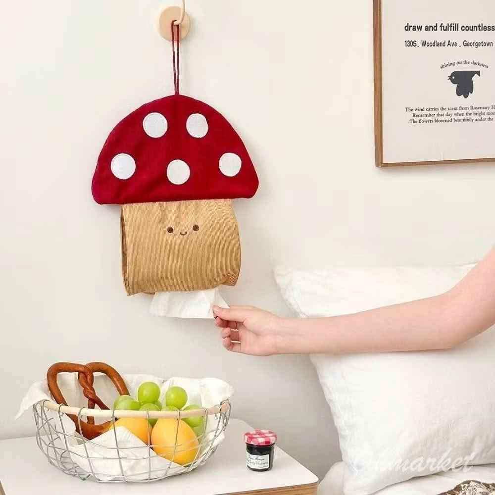 生活市集台灣現貨 可愛蘑菇造型紙巾盒 臥室床頭紙巾收納袋 壁掛式紙抽盒 學生宿舍 家用紙巾套 可愛房間裝飾 居家擺設