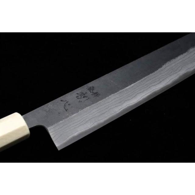 初心 雲影 青二鋼 黑打 墨流 劍形筋引刀 25cm
