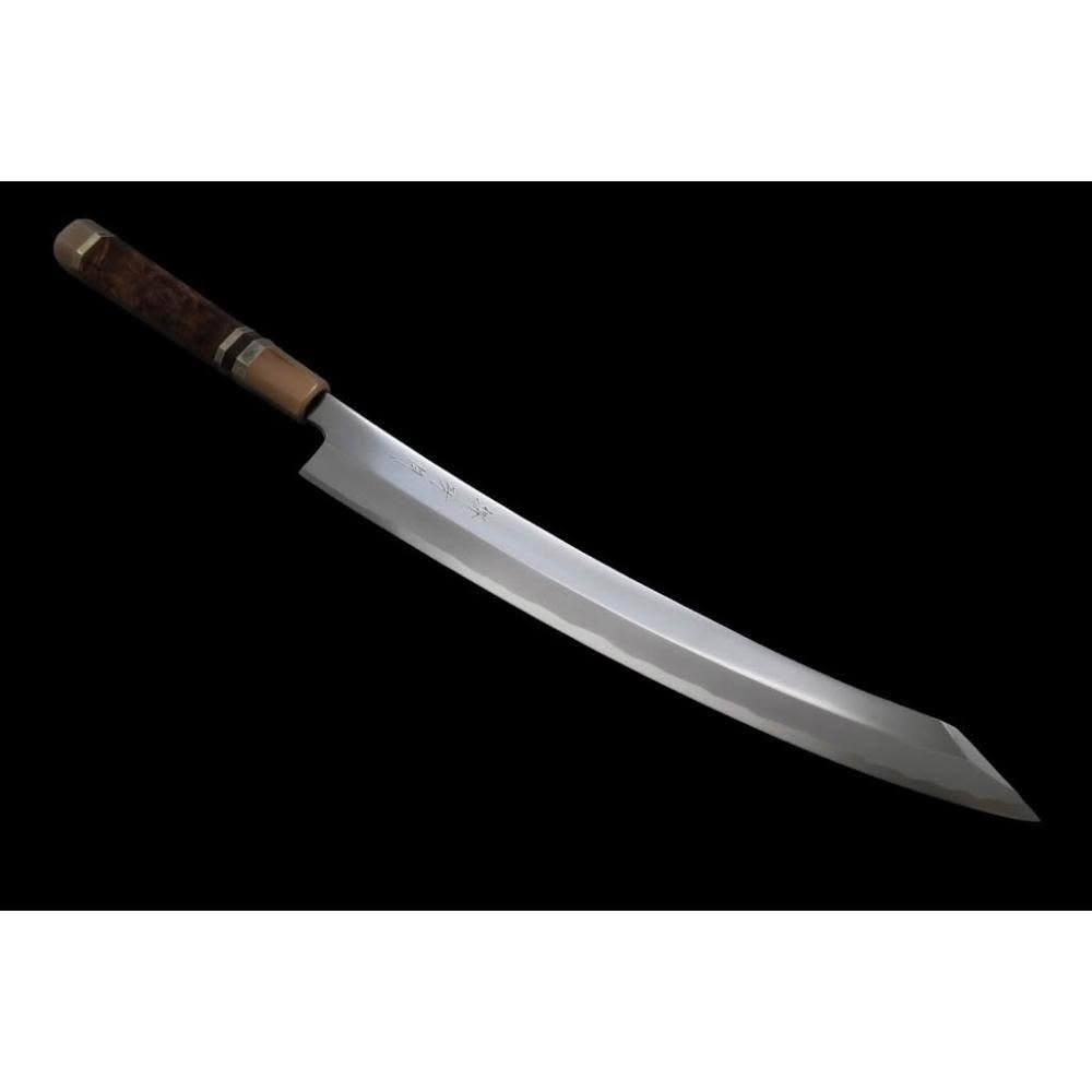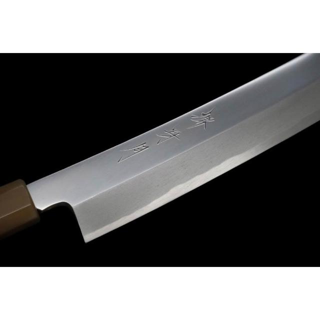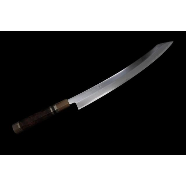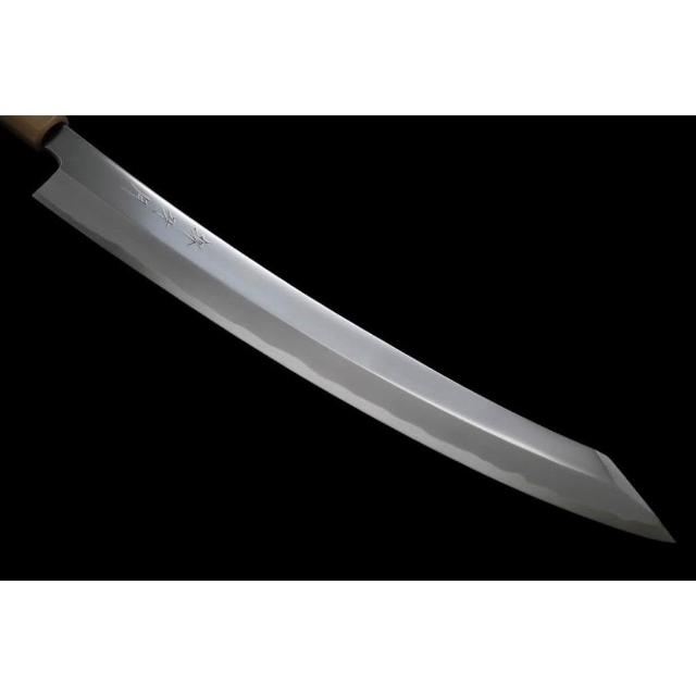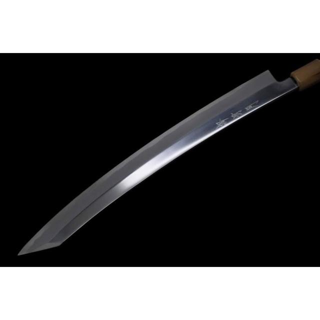 堺牙月 白一鋼 平鏡面 鬼反 劍型柳刃 花梨雙白水三銀卷中刀刀具網