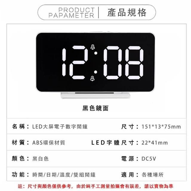 LED數字鐘 多功能鬧鐘 家用桌面時鐘 科技時鐘 宿舍電子鐘 數字時鐘 (帶3檔亮度燈 鬧鐘 日期 溫度 貪睡功能)