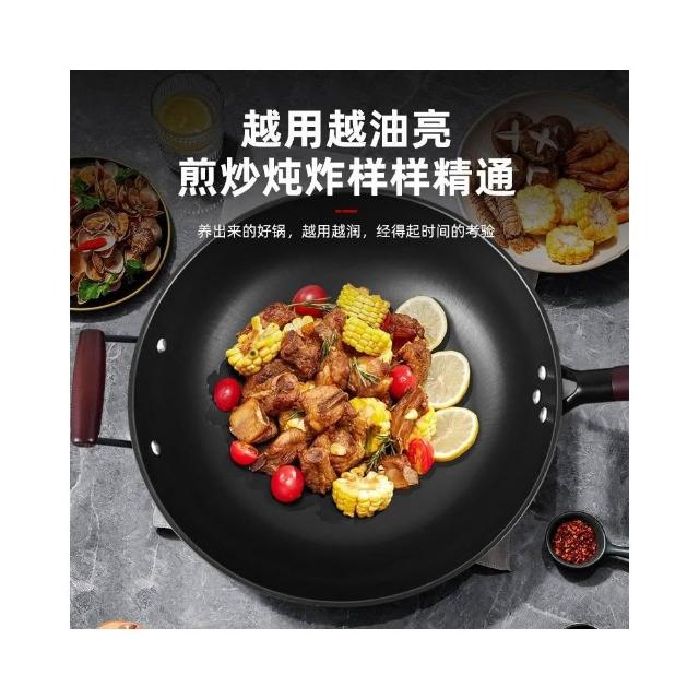 鏗鏘_陸川平底鍋 32-36cm鐵鍋 已開鍋老式生鐵鍋 無塗層鑄鐵鍋 炒菜鍋 家用加深炒鍋 電磁爐燃氣灶通用 帶鍋蓋