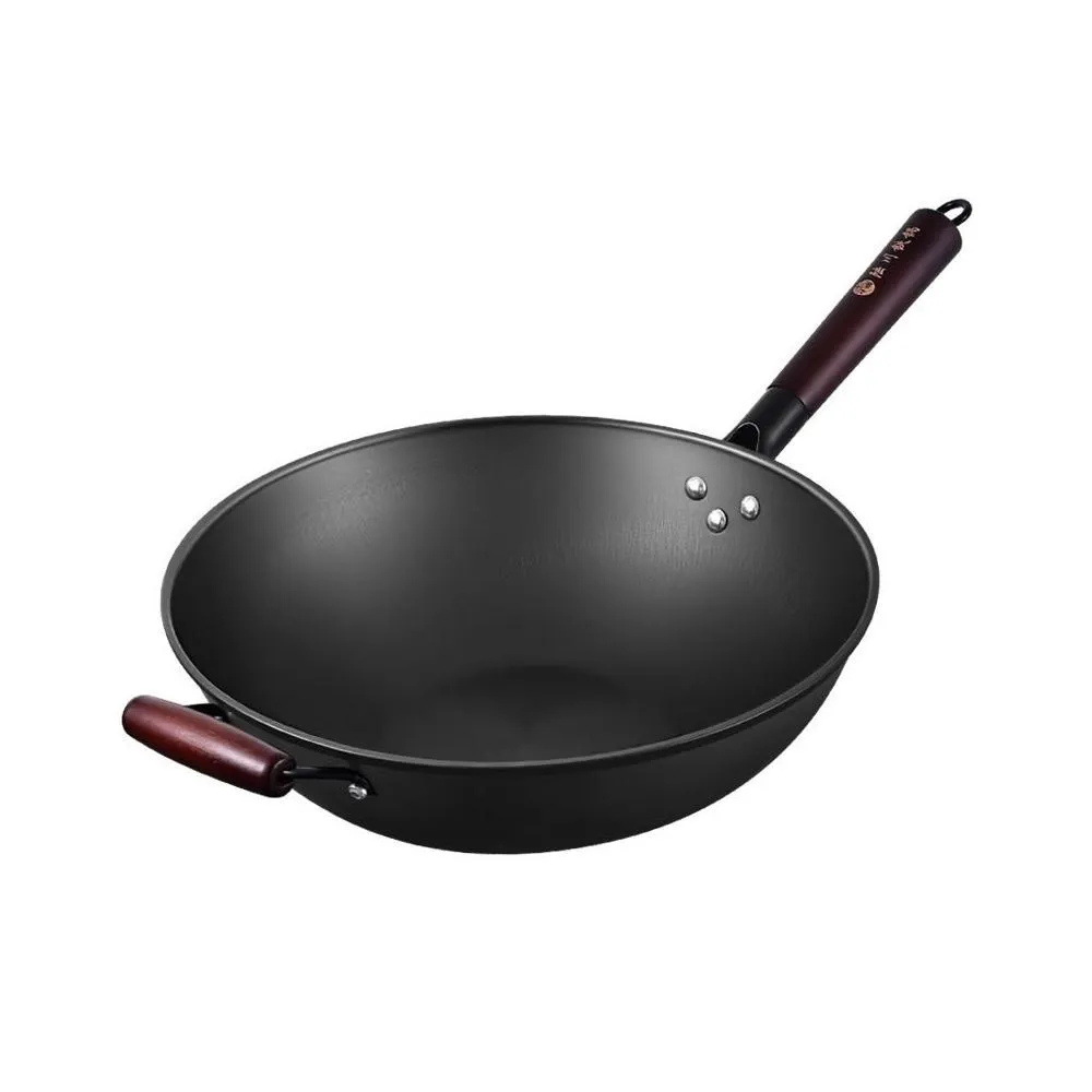 鏗鏘_陸川平底鍋 32-36cm鐵鍋 已開鍋老式生鐵鍋 無塗層鑄鐵鍋 炒菜鍋 家用加深炒鍋 電磁爐燃氣灶通用 帶鍋蓋
