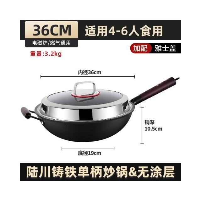 鏗鏘_陸川平底鍋 32-36cm鐵鍋 已開鍋老式生鐵鍋 無塗層鑄鐵鍋 炒菜鍋 家用加深炒鍋 電磁爐燃氣灶通用 帶鍋蓋