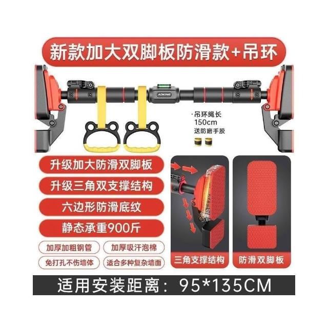 免打孔吊環室內成人引體向上器 家用門上單槓小型健身器材 加大防滑腳板多墻面適用 承重900斤帶水平儀/吊環