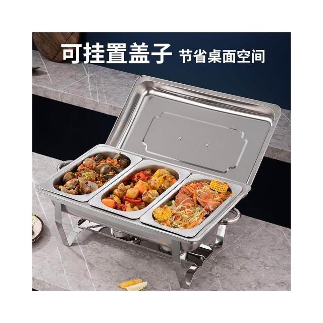 不鏽鋼酒店自助餐爐 不鏽鋼平底鍋 翻蓋布菲爐 可摺疊保溫長方形餐盤 酒精加熱 單格/雙格/三格/四格11L