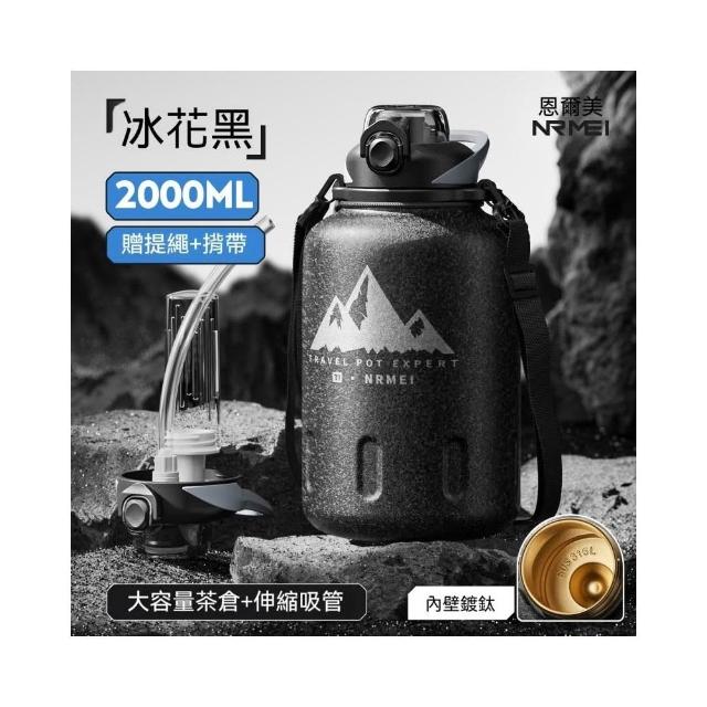 恩爾美 316L不鏽鋼 保溫杯 1000/1500/2000ML大容量保冷杯 帶背帶保溫壺 大肚運動水壺 一蓋雙飲