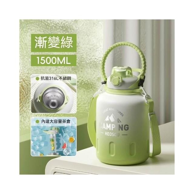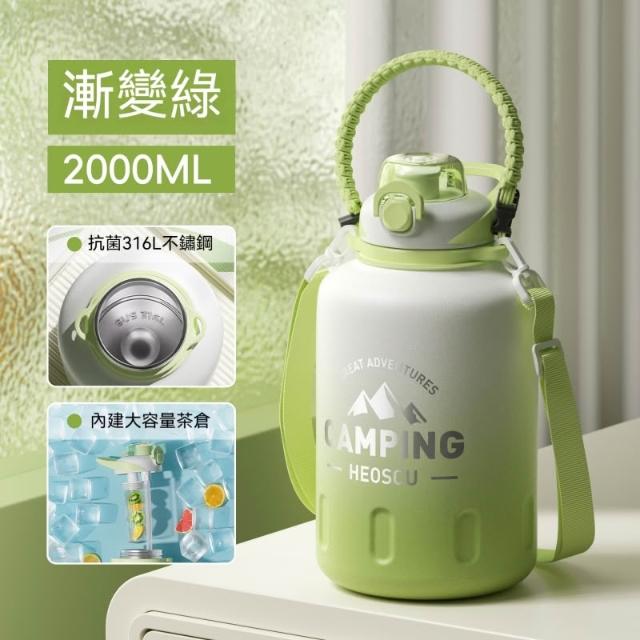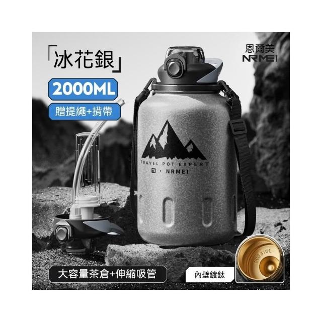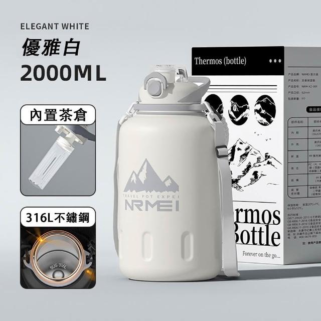 恩爾美 316L不鏽鋼 保溫杯 1000/1500/2000ML大容量保冷杯 帶背帶保溫壺 大肚運動水壺 一蓋雙飲