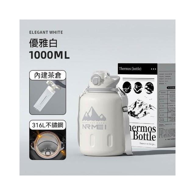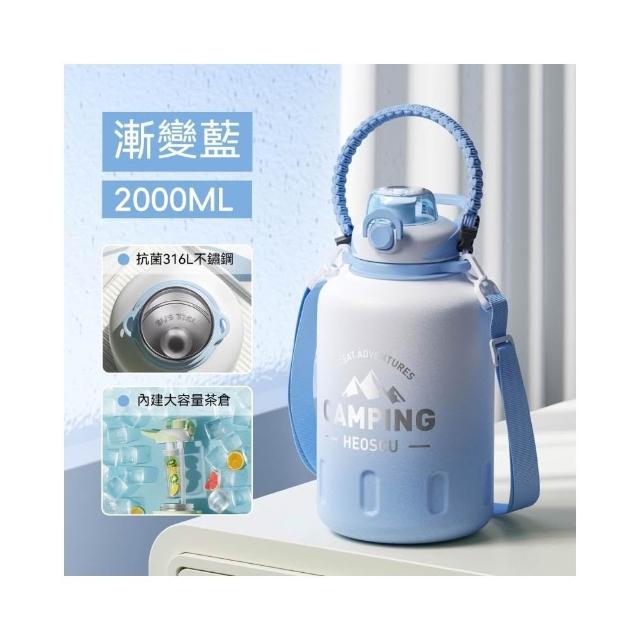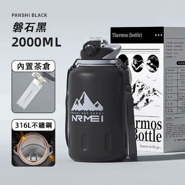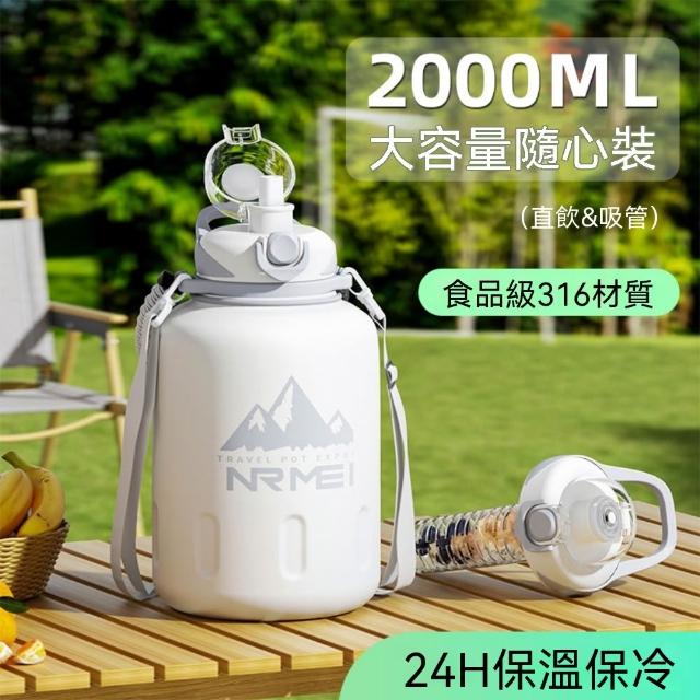 恩爾美 316L不鏽鋼 保溫杯 1000/1500/2000ML大容量保冷杯 帶背帶保溫壺 大肚運動水壺 一蓋雙飲