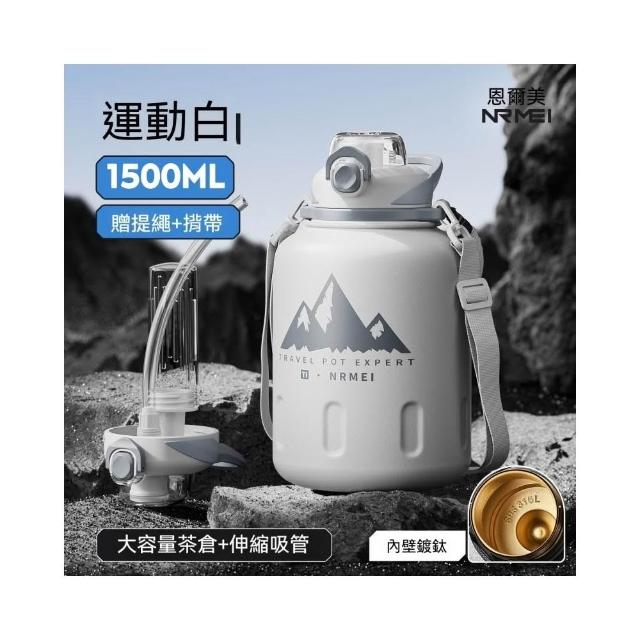 恩爾美 316L不鏽鋼 保溫杯 1000/1500/2000ML大容量保冷杯 帶背帶保溫壺 大肚運動水壺 一蓋雙飲