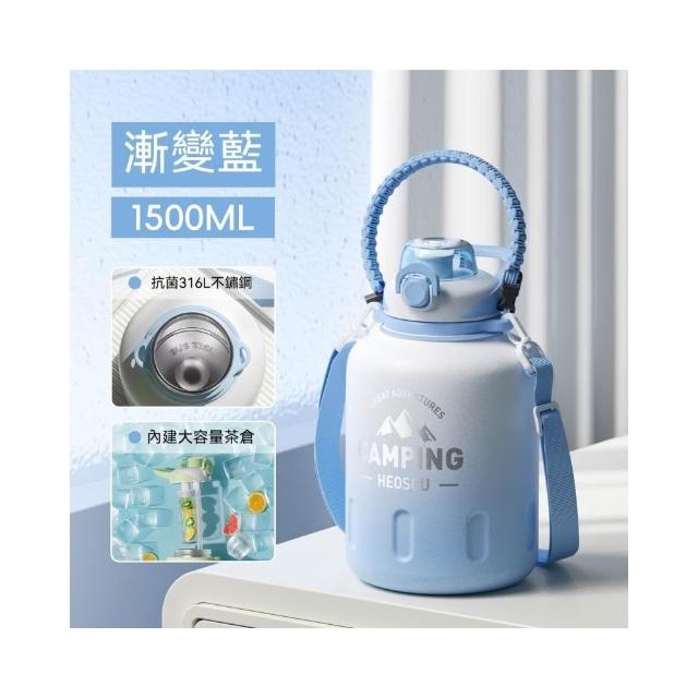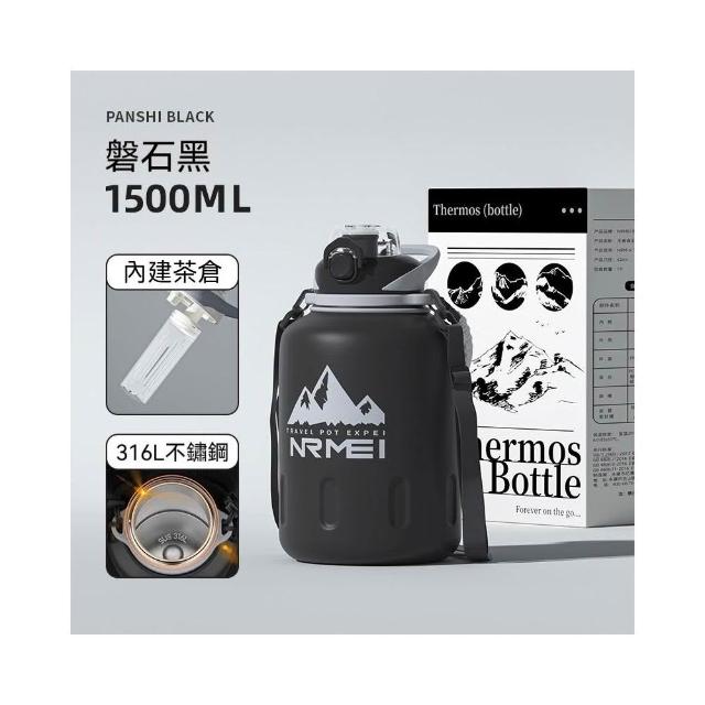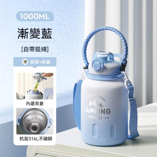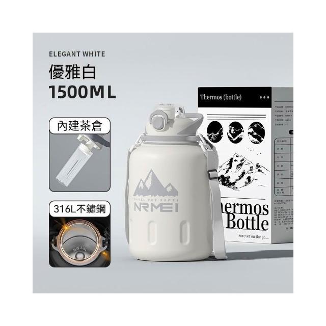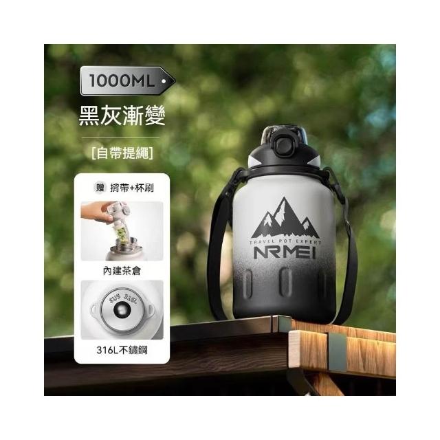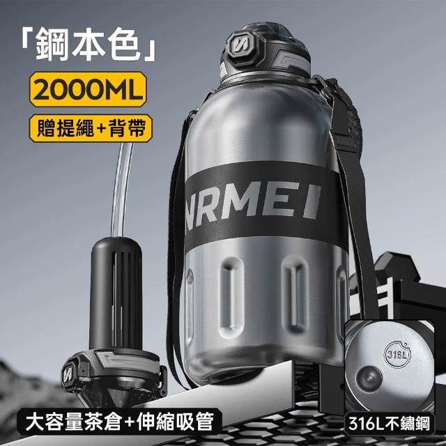 恩爾美 316L不鏽鋼 保溫杯 1000/1500/2000ML大容量保冷杯 帶背帶保溫壺 大肚運動水壺 一蓋雙飲