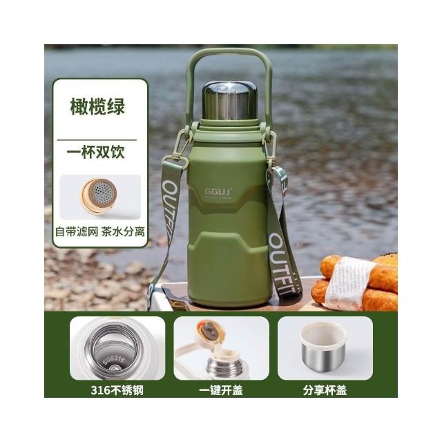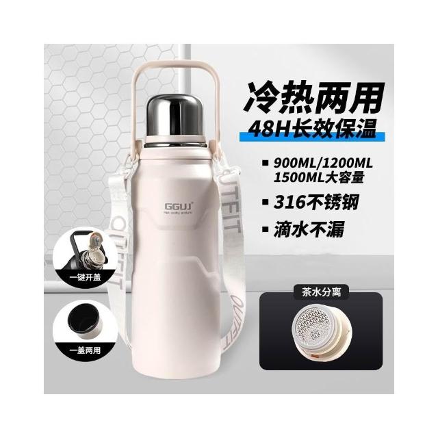GGUJ_茶漏車載水杯 恆溫保溫杯 900/1200/1500ML大容量雙飲保溫壺 316不鏽鋼保溫杯 高顏值保溫水杯