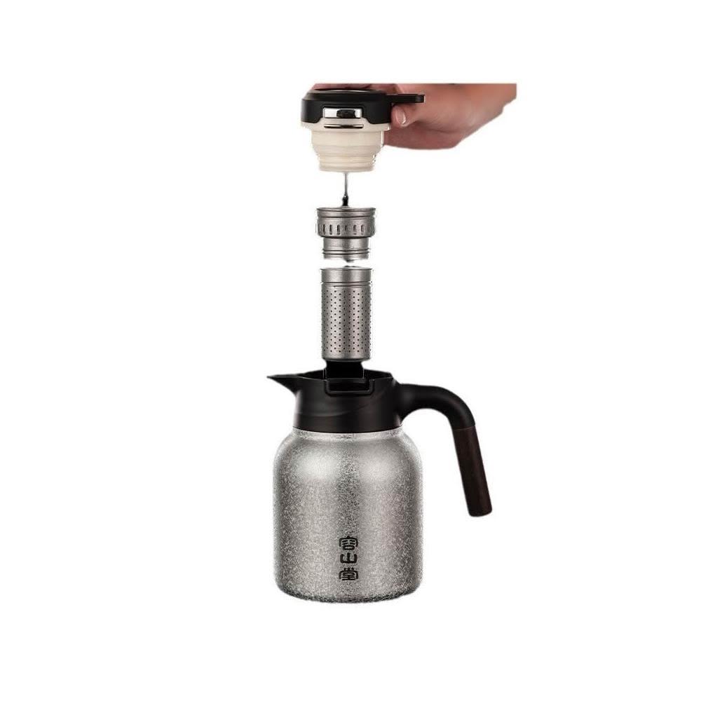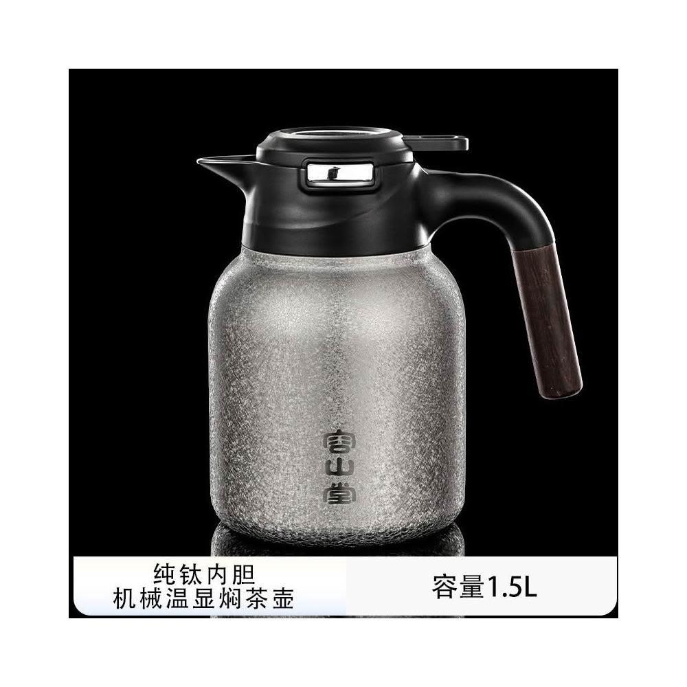 容山堂_純鈦內膽燜茶壺 機械溫顯泡茶壺茶倉熱水壺 304不鏽鋼外殼保溫壺 1.5L大容量實木手柄水壺 20.5*21cm