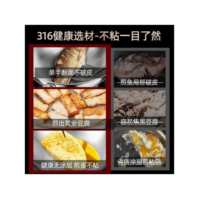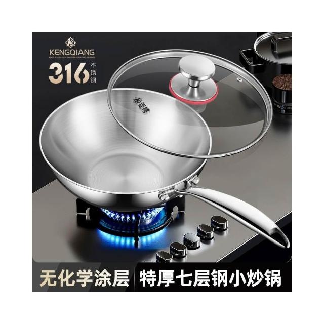 鏗鏘_316不鏽鋼炒鍋22-30cm無塗層不粘鍋304不鏽鋼蒸鍋不粘炒鍋一人食平底鍋炒菜鍋燃氣灶電磁爐通用帶蒸格玻璃鍋蓋