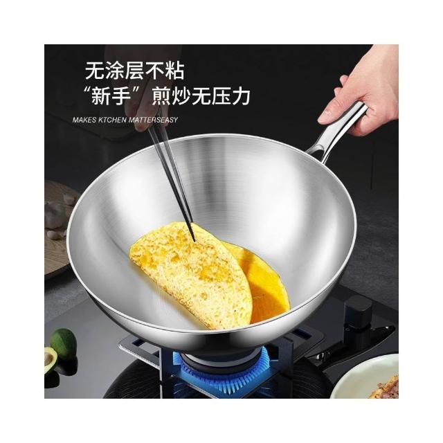 鏗鏘_316不鏽鋼炒鍋22-30cm無塗層不粘鍋304不鏽鋼蒸鍋不粘炒鍋一人食平底鍋炒菜鍋燃氣灶電磁爐通用帶蒸格玻璃鍋蓋