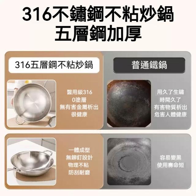 易億派_32-36cm不鏽鋼炒鍋 316不鏽鋼炒菜鍋 無油煙不沾炒鍋 家用無塗層不粘鍋 帶玻璃蓋木鏟 燃氣灶電磁爐通用