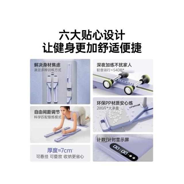 佑美_分體式健身板 智能計時計數款 多功能健腹板 卷腹健腹輪 自動回彈普拉提滑雪機 室內健身器材 可折疊可懸掛