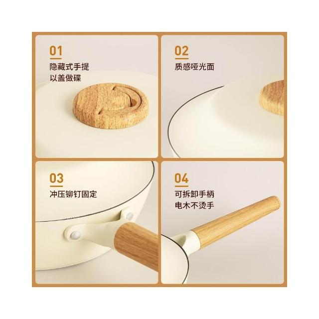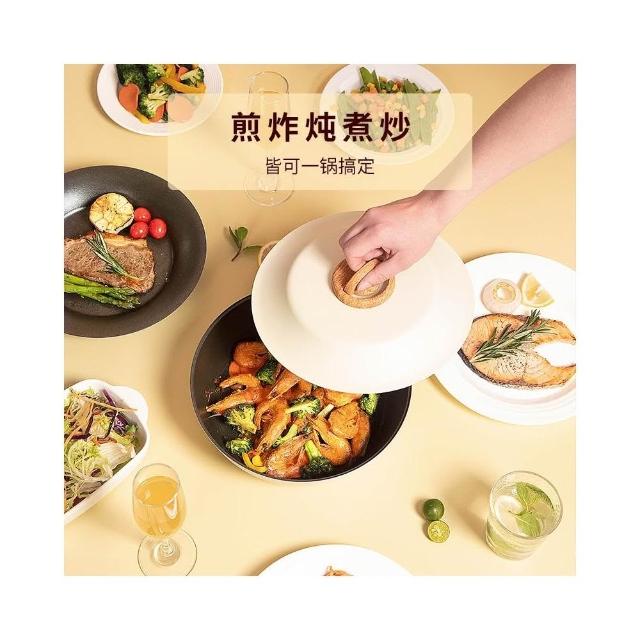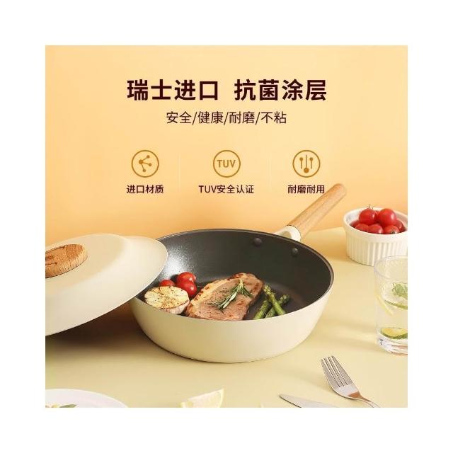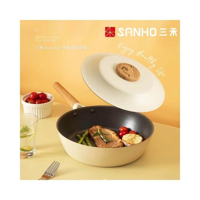 三禾鍋具 26/28cm平底鍋 dundun不粘鍋 煎炒鍋 不粘深煎炒鍋 家用炒菜鍋 電磁爐燃氣通用 煎鍋 帶鍋蓋