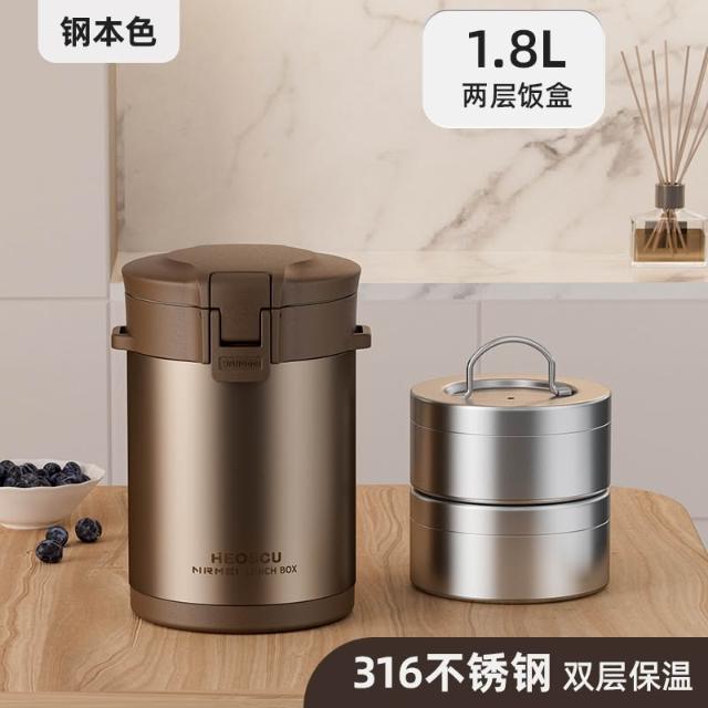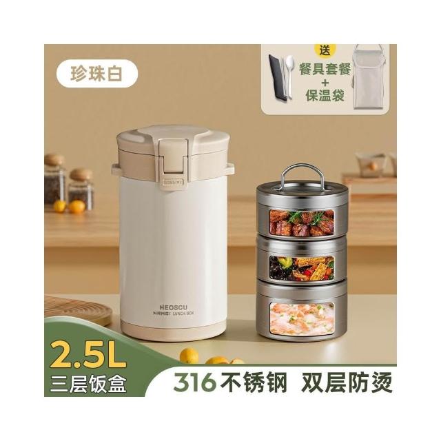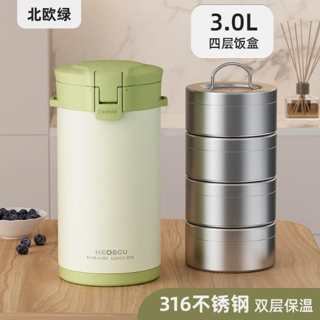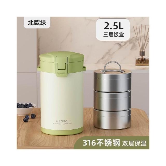 恩爾美 24H超長保溫飯盒桶 1.8/2.5/3.0L大容量保溫盒 316不鏽鋼內膽 便攜居家上班族便當盒 多層學生保溫