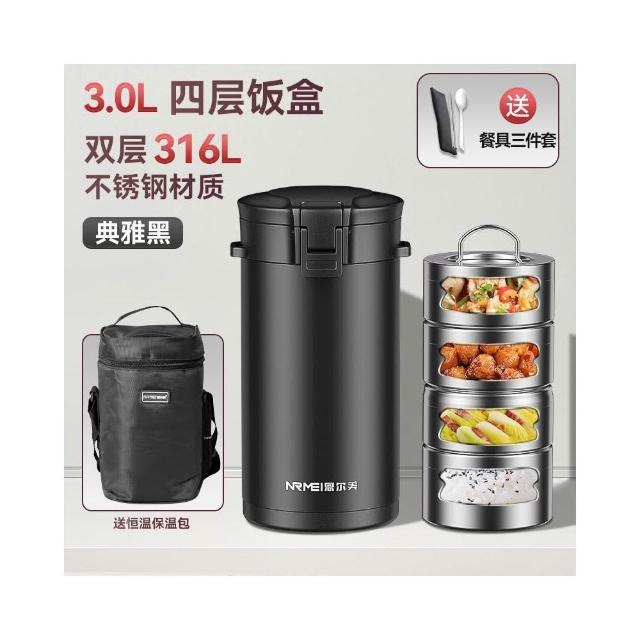 譽添家居恩爾美 保溫飯盒桶 24H超長保溫 316不鏽鋼保溫飯盒 學生大容量2.5L/3L便當盒 便攜4層上班族保溫桶