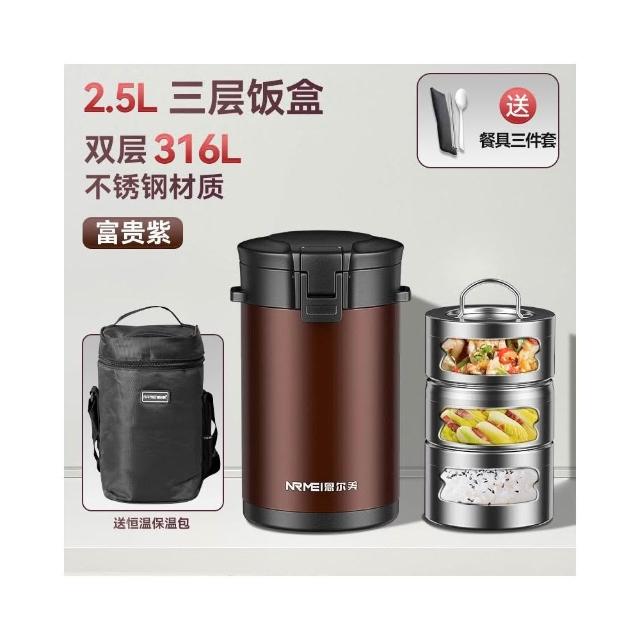 譽添家居恩爾美 保溫飯盒桶 24H超長保溫 316不鏽鋼保溫飯盒 學生大容量2.5L/3L便當盒 便攜4層上班族保溫桶