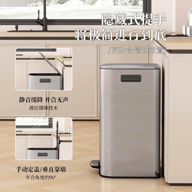 譽添家居23/30/50/60L 不鏽鋼腳踏垃圾桶 內外雙桶緩降設計 多場景通用 防漏防鏽靜音耐用