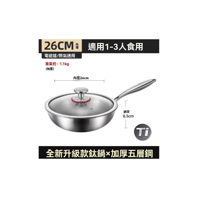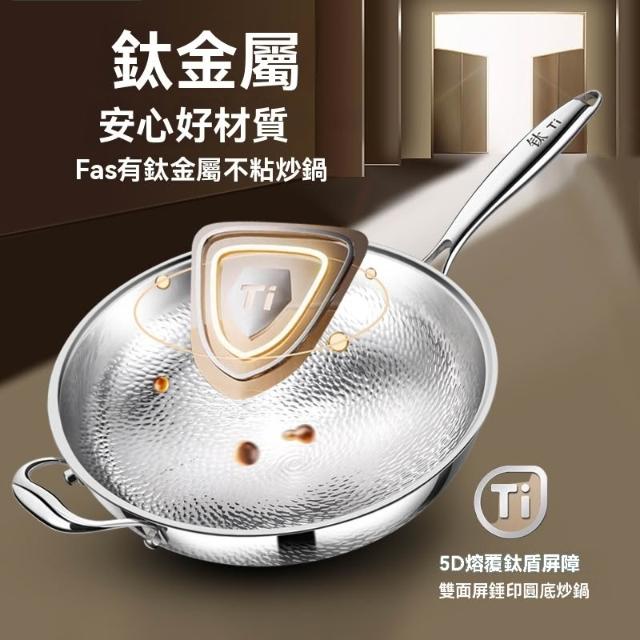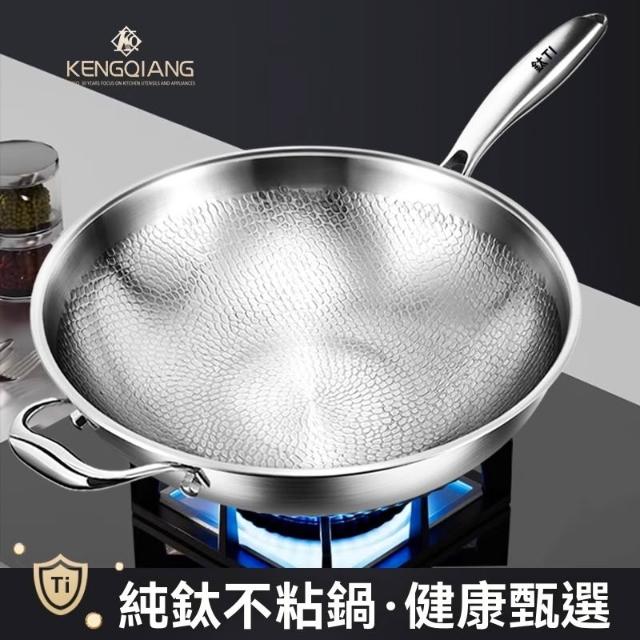 鏗鏘 德國鈦鍋 純鈦炒鍋 無塗層 不黏鍋 魚鱗錘紋鈦炒鍋 家用炒菜鍋 電磁爐用