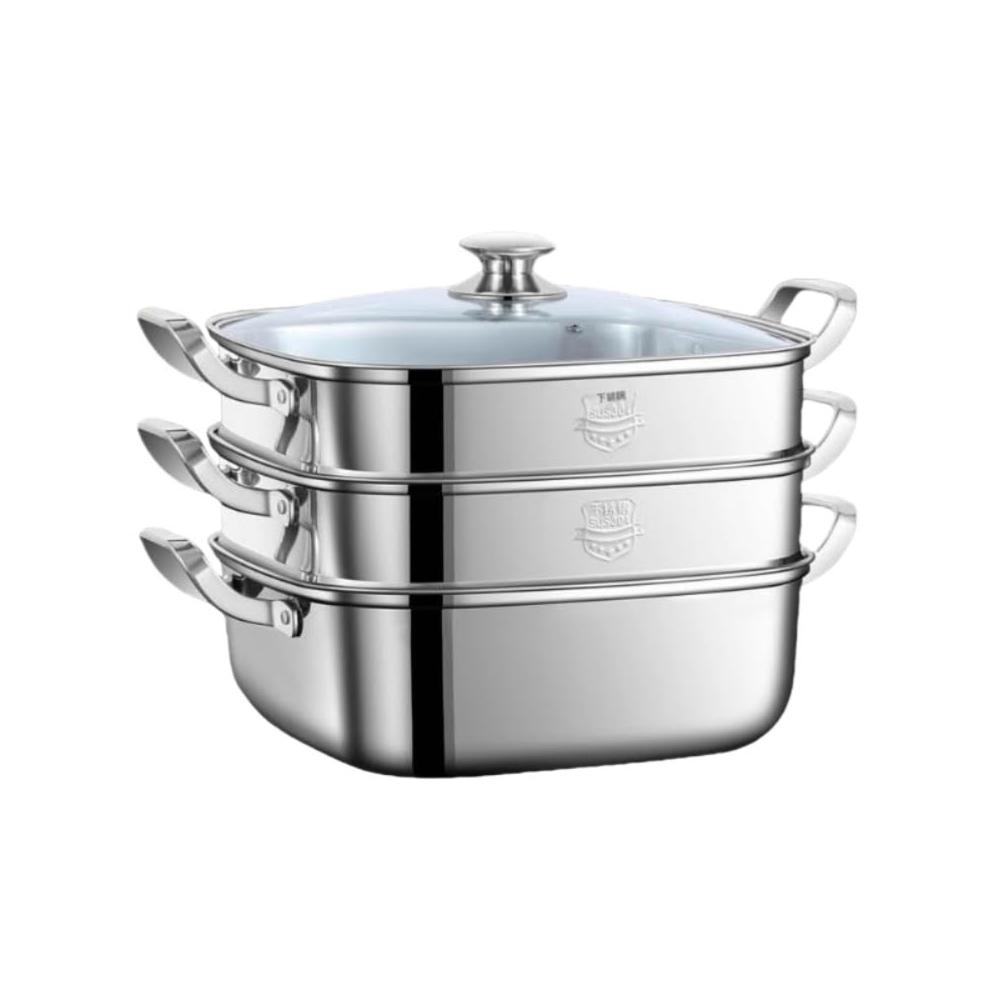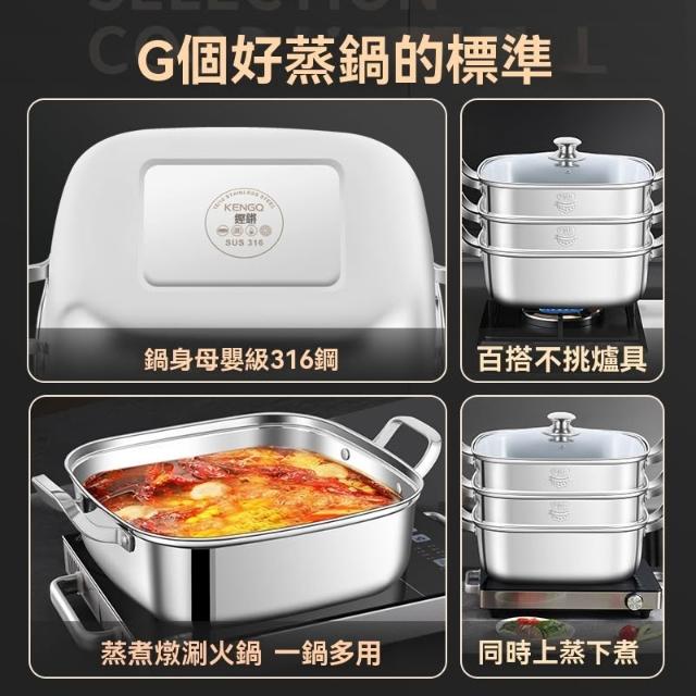 譽添家居鏗鏘 方形蒸鍋 家用 316不銹鋼 加厚 雙層 三層 蒸籠屜 多功能 燃氣電磁爐通用