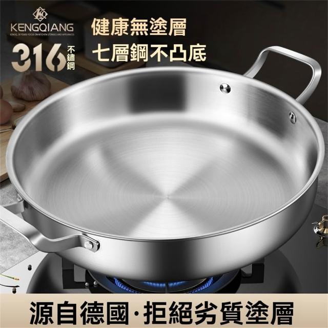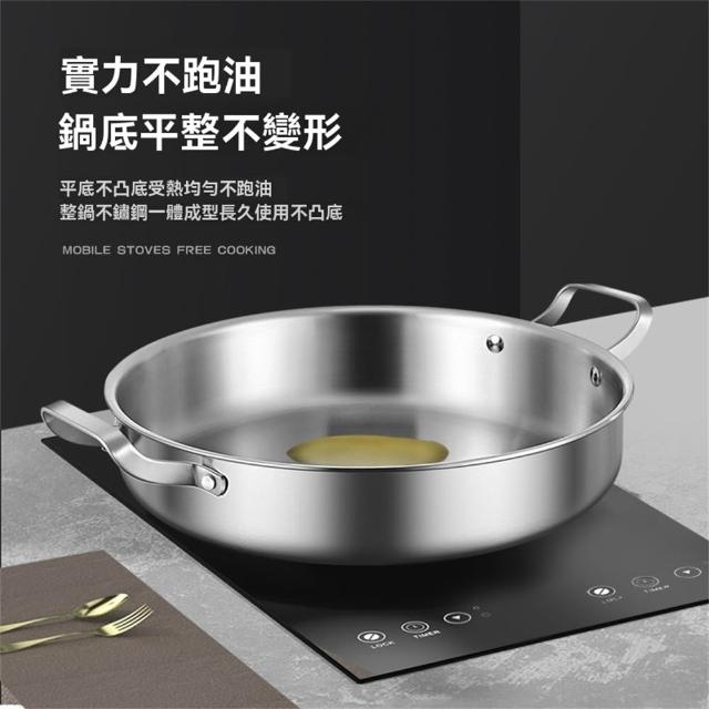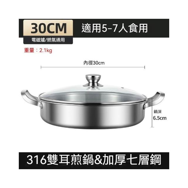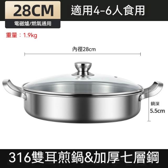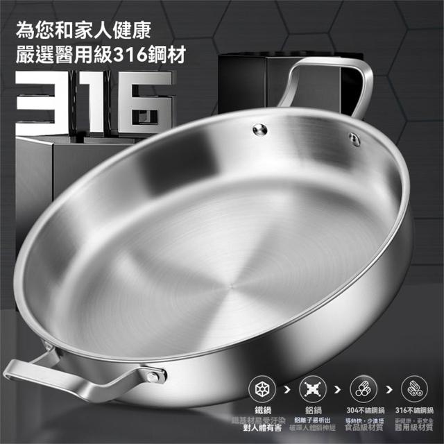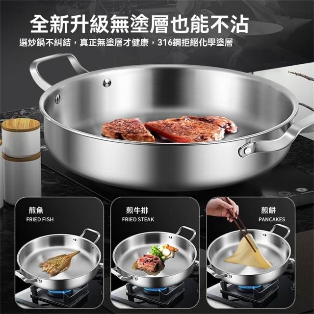 譽添家居鏗鏘 316不銹鋼 煎鍋 雙耳 平底鍋 不黏鍋 烙餅專用鍋 商用燜鍋 加深 牛排煎鍋28-32cm