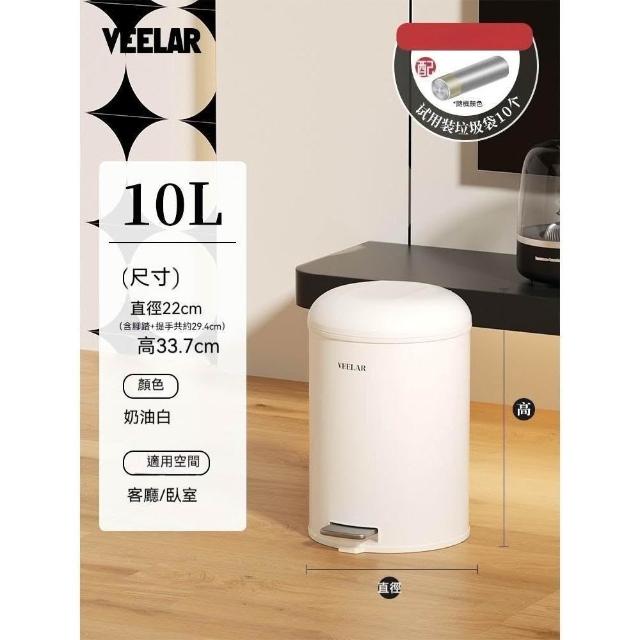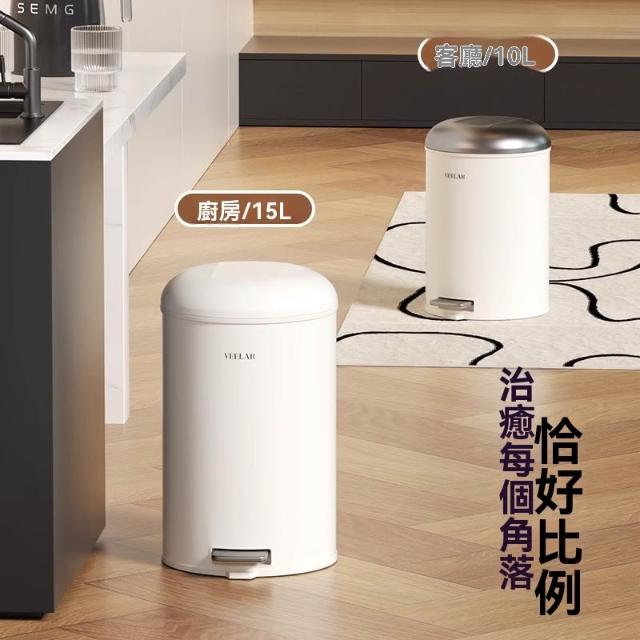 譽添家居VEELAR复古圆形腳踏垃圾桶|雙桶設計隱藏垃圾袋|圓弧防蟑密封款|客廳衛浴通用|防潮不鏽鋼桶身