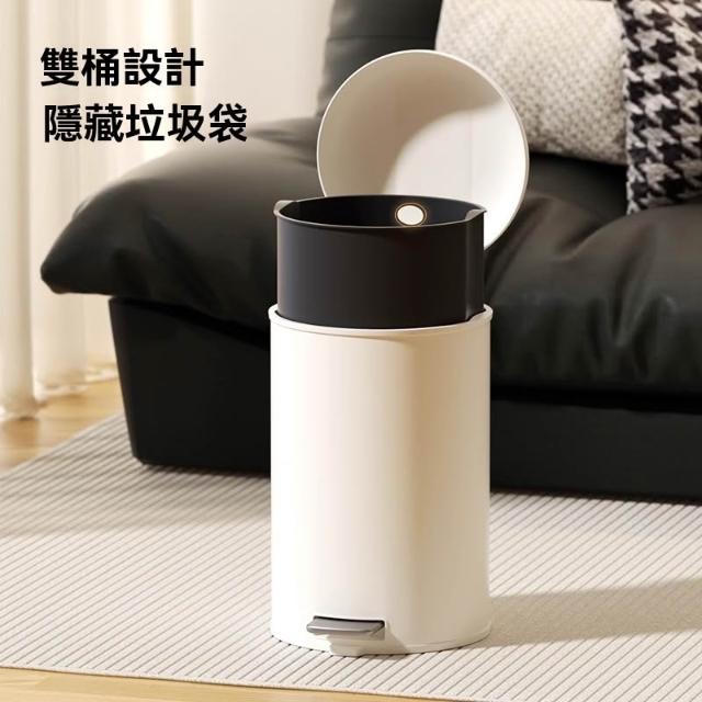 譽添家居VEELAR复古圆形腳踏垃圾桶|雙桶設計隱藏垃圾袋|圓弧防蟑密封款|客廳衛浴通用|防潮不鏽鋼桶身